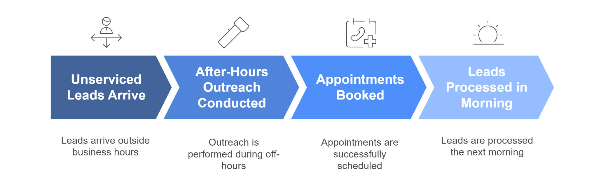 Out-of-Hour Availability – Operates after hours, ensuring no lead is missed and converting them into appointments overnight